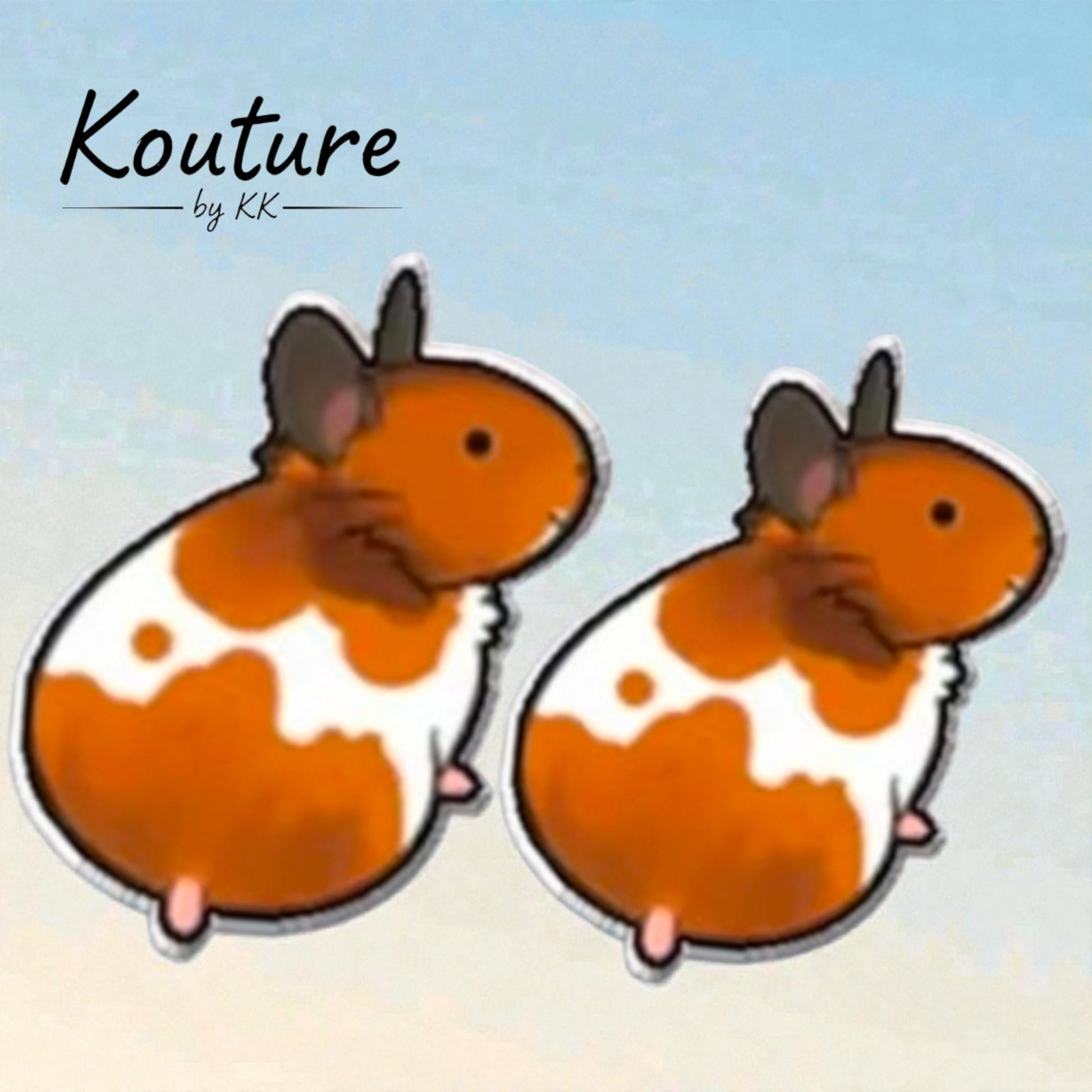 Brown and White Hamster Earrings – Adorable Acrylic Post Earrings
